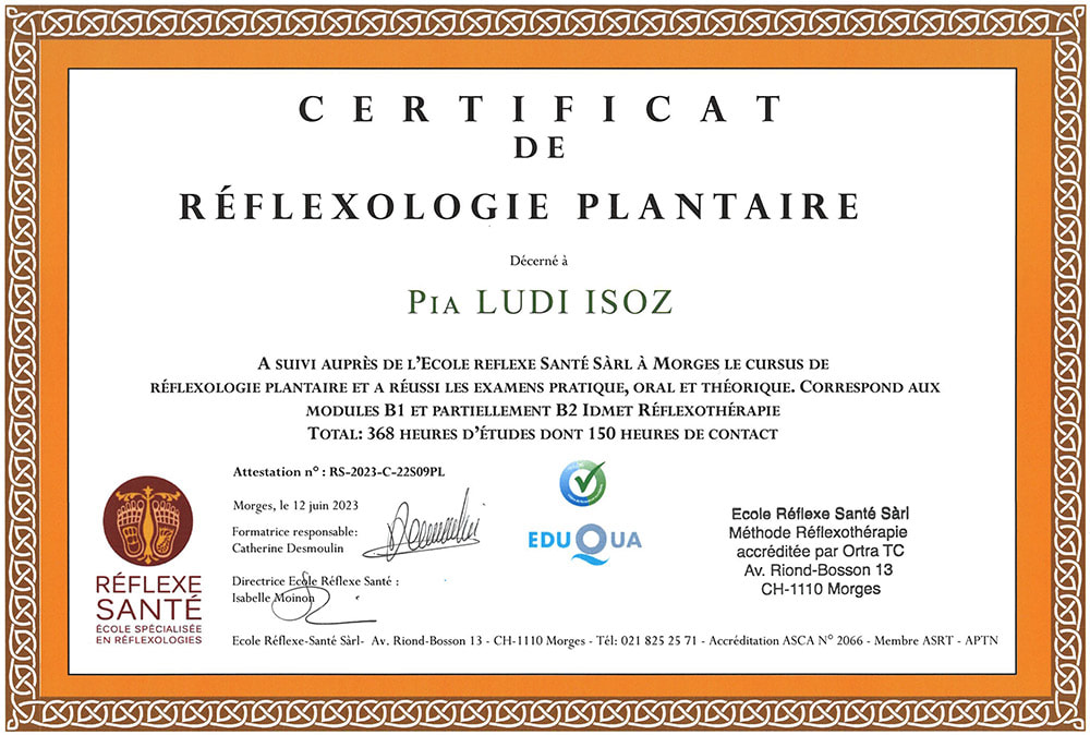 2023 : Certificat de Réflexologie plantaire